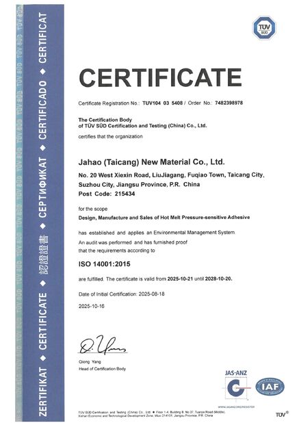 मानक:ISO 14001: 2015 संख्या:TUV100 03 5408 मुद्दा तिथि:2025-10-21 समाप्ति तिथि:2028-10-20